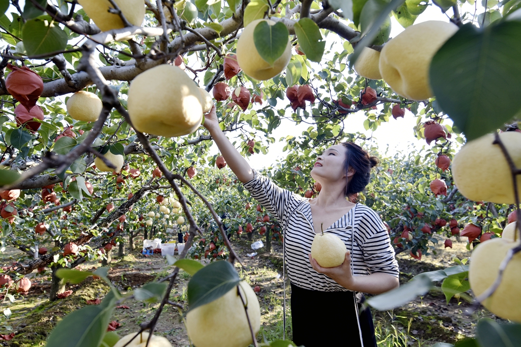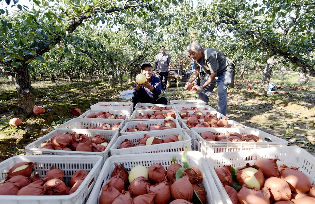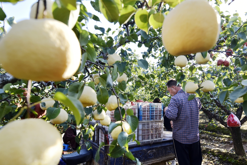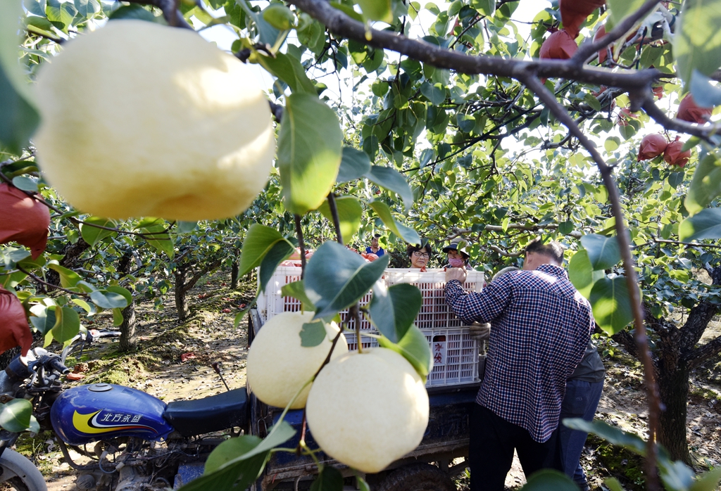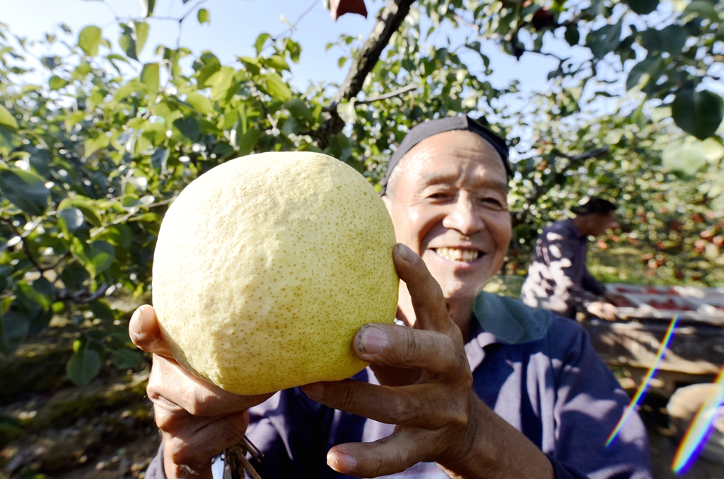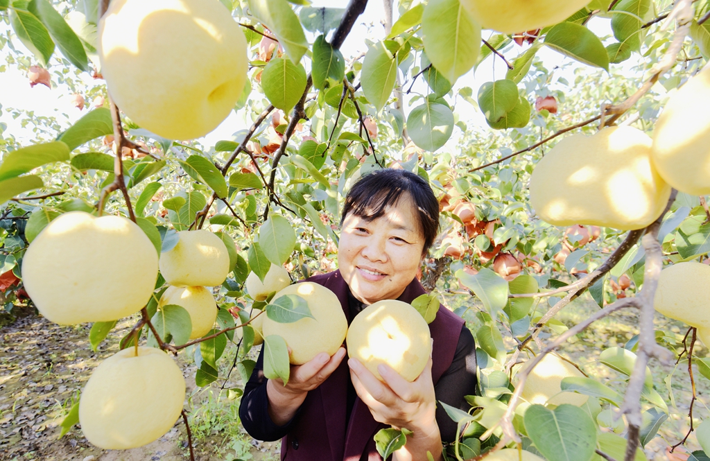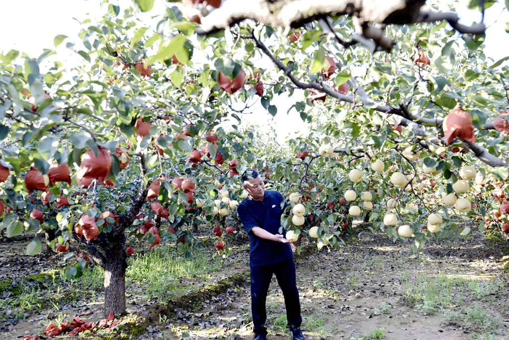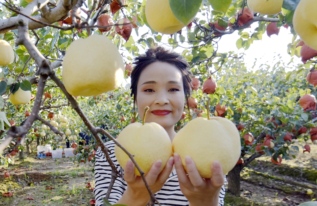 “今年的梨树挂果稠、个头大而且大小均匀,预计每亩地的产量可突破6000斤以上。你看这些酥梨,个头规整果型好,口感脆甜耐储运,吸引来大批客商云集和游客前来休闲采摘者。”徐翠玲的话里透着喜悦。