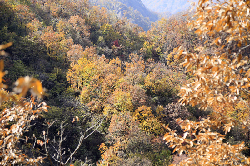2025年11月1日,汝阳县付店镇西泰山风景区,红叶似火,深秋的色彩更浓了。
