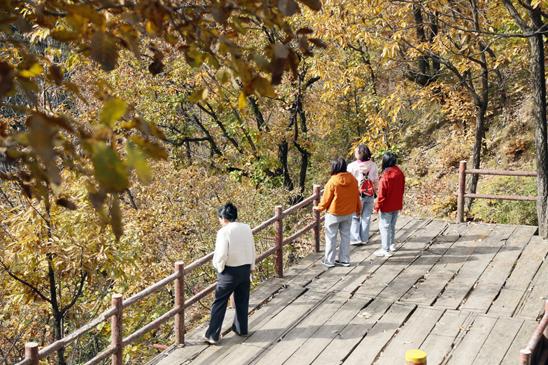 2025年11月1日,在五彩斑斓汝阳县付店镇西泰山风景区,游客在游览观光。