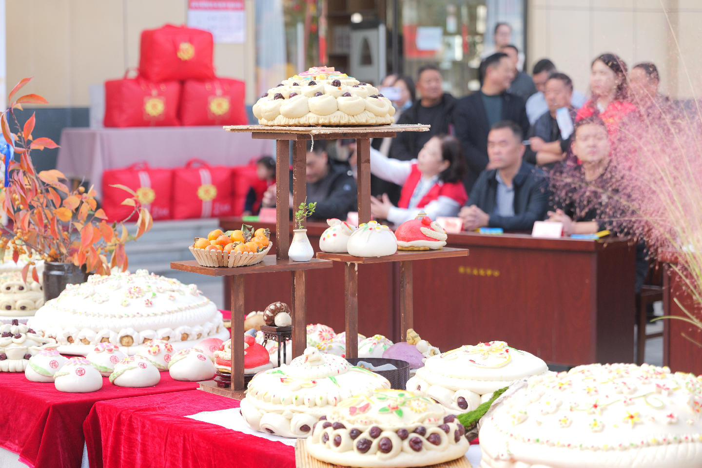 现场,一块块蒸糕造型各异、香气袭人:既有遵循老手艺制作的经典款式,麦香醇厚、软绵适口;也有融入创意的新颖设计,或点缀红枣枸杞寓意吉祥,或塑成寿桃、各种造型传递祝福。每一份作品都承载着村民对重阳习俗的理解,更藏着对生活的热爱与巧思。