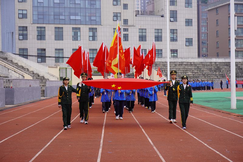 伴着激昂的运动员进行曲,运动会开幕式正式拉开帷幕。国旗方队、裁判员方队拉开了入场式的帷幕。各班学子身着整齐服装,以昂扬的姿态依次列队入场。嘹亮的口号、整齐的步伐展现出直中学子蓬勃的朝气与团结的精神,赢得在场师生的阵阵掌声。入场仪式结束后,全场肃立,雄壮的《义勇军进行曲》奏响,五星红旗冉冉升起,爱国情怀与体育精神在这一刻交融共鸣。