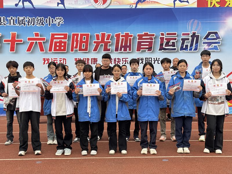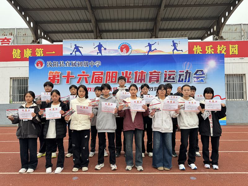 汝阳县直属初级中学第十六届阳光体育运动会圆满举行   	   	金秋送爽,活力满场。10月28日至29日,汝阳县直属初级中学第十六届阳光体育运动会圆满举行,全体师生齐聚体育场,共同迎接这场充满激情与拼搏的体育盛会。   	   	伴着激昂的运动员进行曲,运动会开幕式正式拉开帷幕。国旗方队、裁判员方队拉开了入场式的帷幕。各班学子身着整齐服装,以昂扬的姿态依